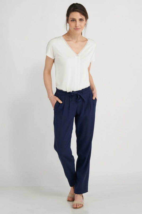 Pantalon en lin et coton large ceinturé bleu marine de Burton