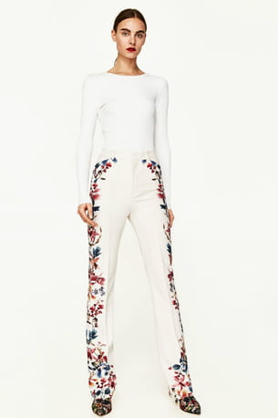 Pantalon taille haute évasé blanc avec imprimé fleuri de Zara