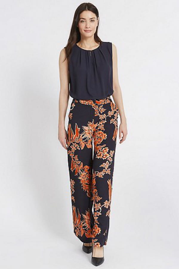 Pantalon taille haute large bleu marine et orange fleuri de Marks & Spencer