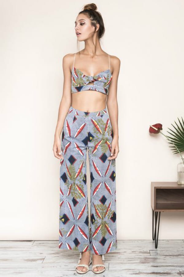 Pantalon large taille haute imprimé ethnique de Suncoo