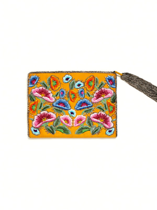Pochette ocre brodée de fleurs de Zara