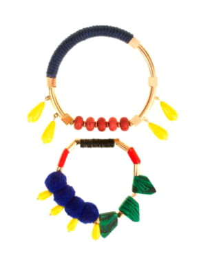 Set de deux bracelets ethniques dorés dotés d'ornements en pierres de Balaboosté