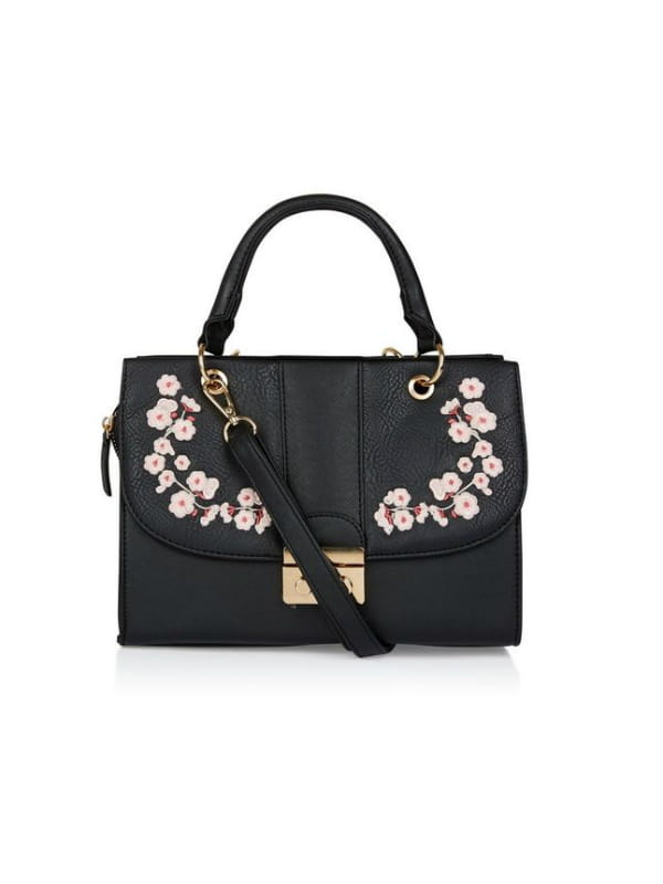 Sac à main cartable en similicuir noir à fleurs brodées de New Look