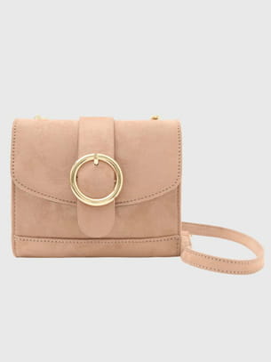 Petit sac à bandoulière en suédine rose poudré de Morgan