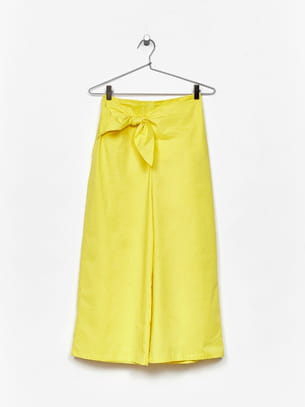 Pantalon ample court avec nœud jaune de Bershka