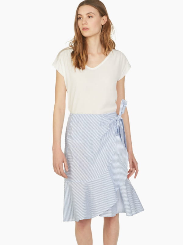 Jupe portefeuille à rayures bleue et blanche de Caroll