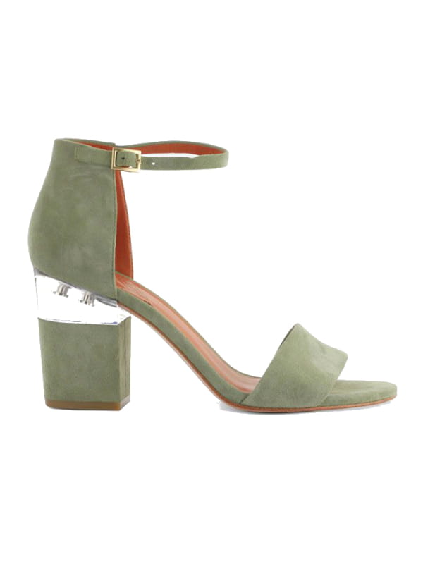 Sandales à talon en daim vert pâle incrustation plexiglass de What For