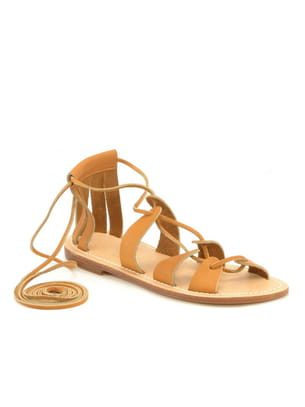 Nu-pieds lacés en cuir cognac de La Botte Gardiane