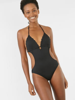 Maillot de bain une pièce noir échancré sur les côté de la taille avec bordures fantaisie au décolleté de Pimkie