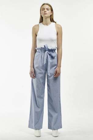 Pantalon palazzo ceinturé à rayures bleues de Harmony Paris