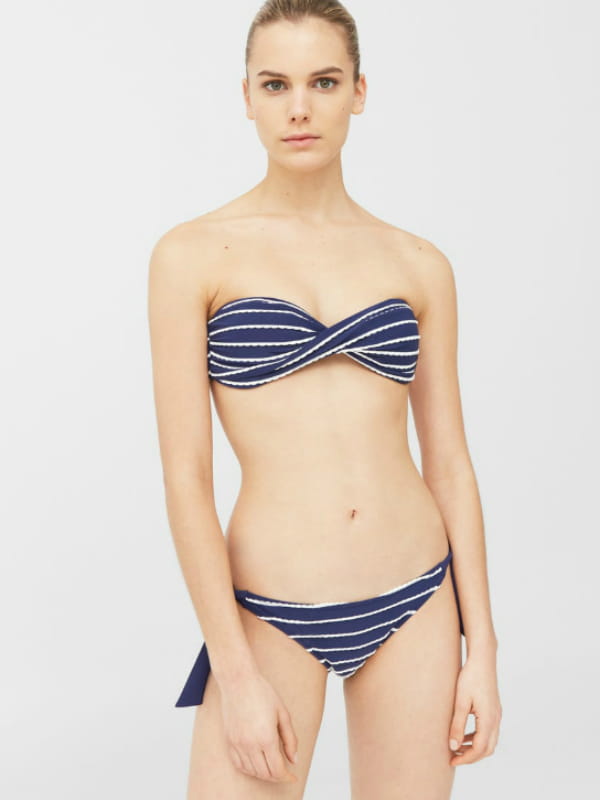 Maillot de bain deux pièces bandeau blanc et bleu marine de Mango