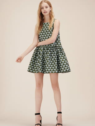 Robe courte évasée sans manches en jacquard vert et blanc de Maje