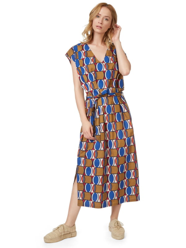 Robe mi-longue sans manches et ceinture à imprimé façon wax de Monoprix