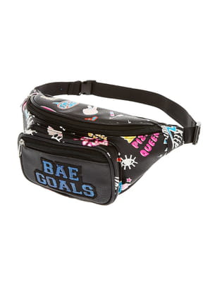 Sac banane en similicuir noir avec écussons et imprimés esprit 80's de Claires