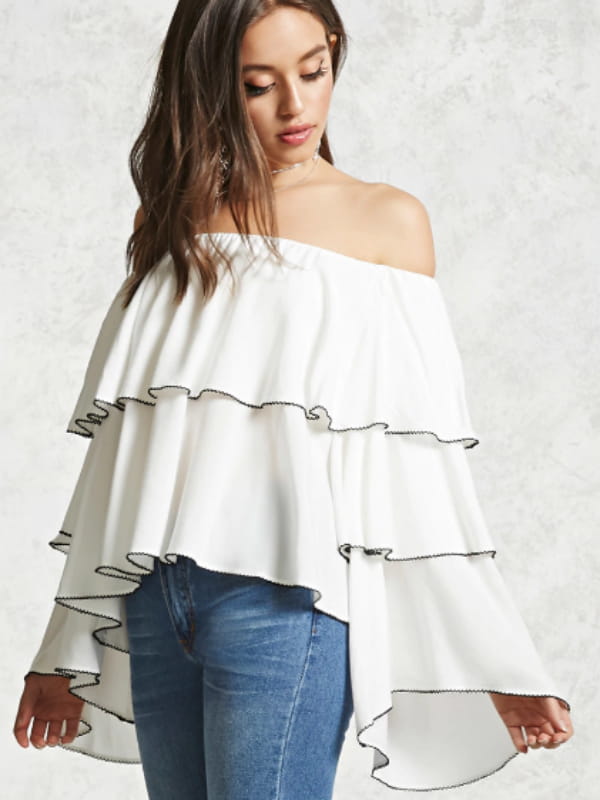 Blouse blanche à volants et liseré noir de Forever