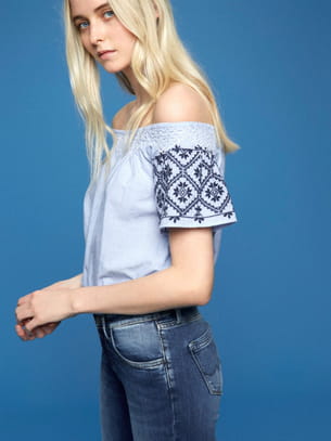 Chemisier bleu brodé à épaules nues de Pepe Jeans