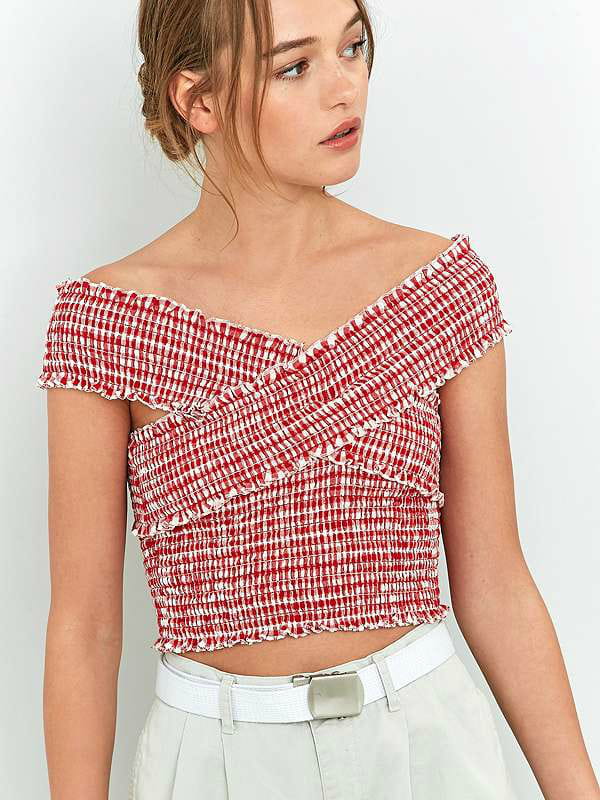 Top croisé et froncé rouge et blanc de Pins & Needles chez Urban Outfitters