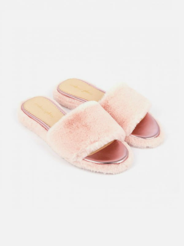 Mules en fausse fourrure rose pâle de Mellow Yellow
