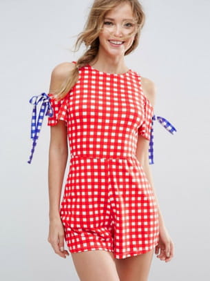 Combinaison-short à carreaux rouges et blancs et nœuds blancs et bleus d'Asos