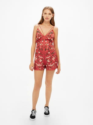 Combinaison short corail à broderies colorées de Bershka