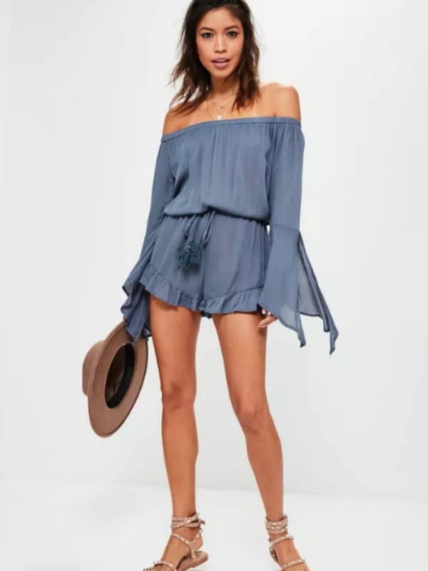 Combinaison short bleu gris à manches longues et nouée à la taille de Missguided