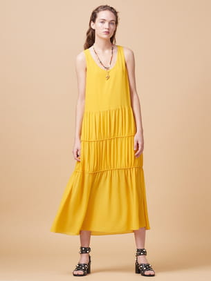 Robe longue jaune sans manches, avec jeu de fronces pour un effet volanté de Maje