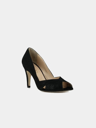 Escarpins en velours métallisé noir, bout ouvert de Jonak