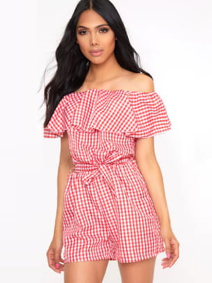 Combishort vichy rouge et blanche à volants de PrettyLittleThing