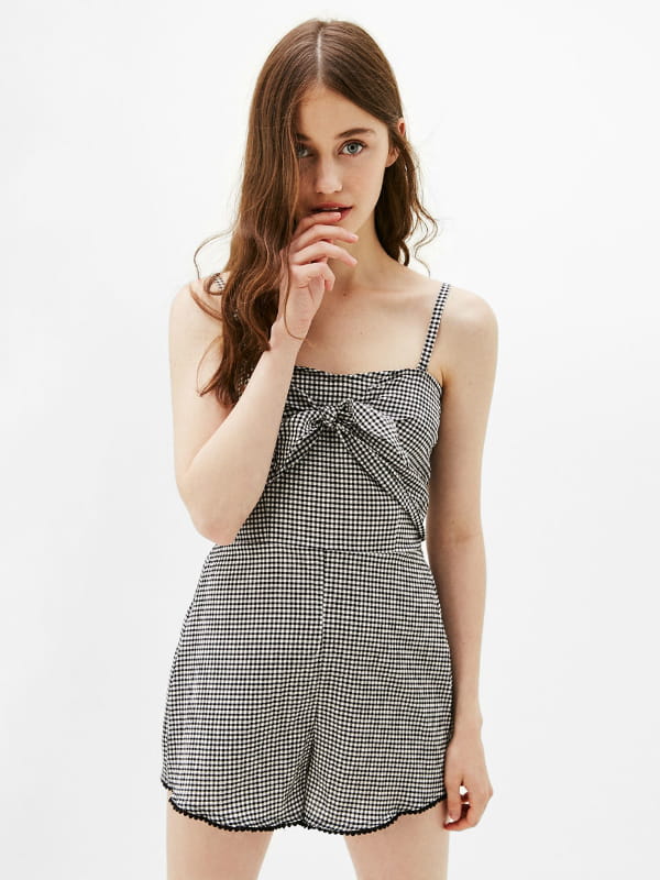Combinaison short à carreaux vichy noirs et blancs de Bershka