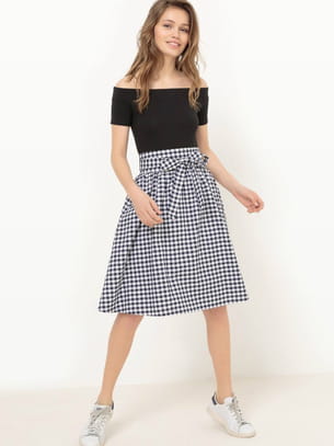 Jupe nouée à carreaux vichy noirs et blancs de Mademoiselle R sur La Redoute