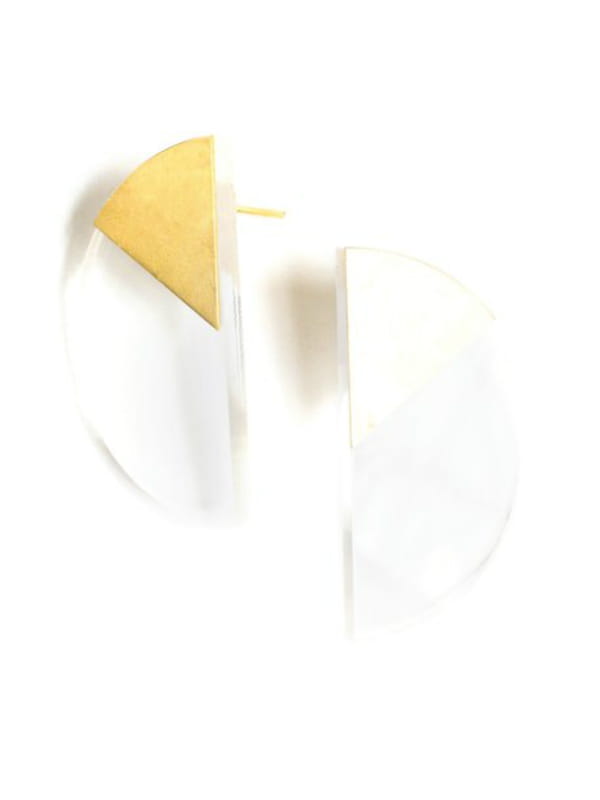 Boucles d'oreilles en plexiglas transparent et empiècement en laiton doré à l'or fin de Helmut Paris