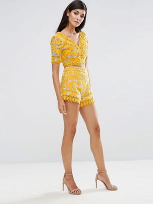 Short en dentelle jaune et blanche d'Aijek sur Asos