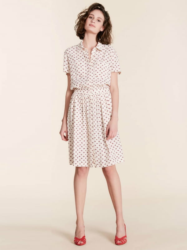 Robe-chemise mi-longue à manches courtes imprimée et resserrée à la taille de Pablo