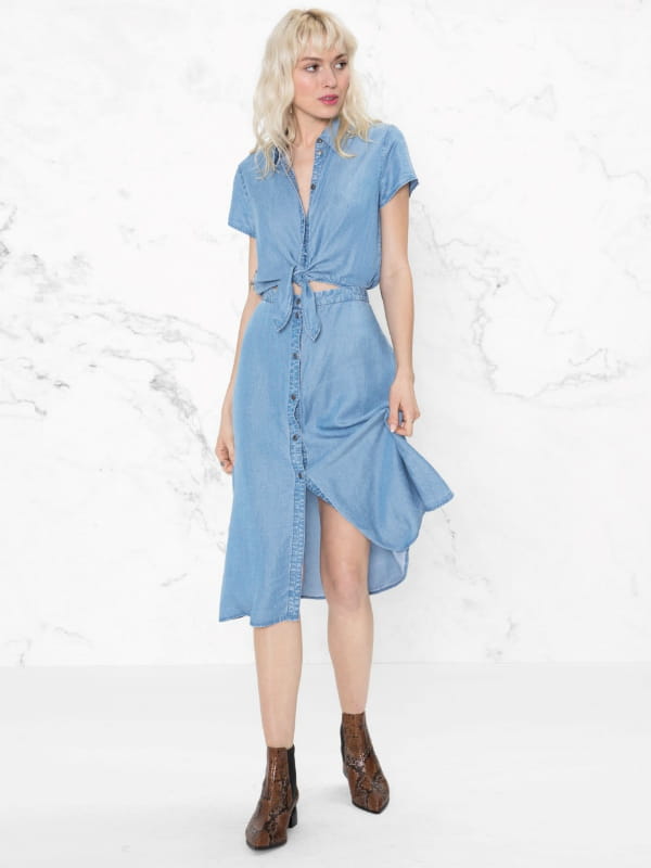 Robe-chemise en denim délavé effet top noué et jupe de & Other Stories