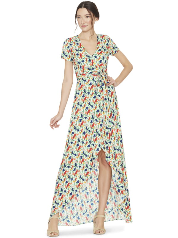 Robe longue portefeuille à motif oiseaux d'Alice + Olivia