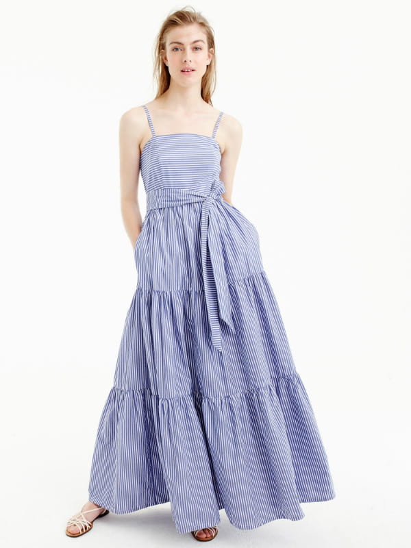 Robe longue rayée bleue et blanche et nouée à la taille de J. Crew
