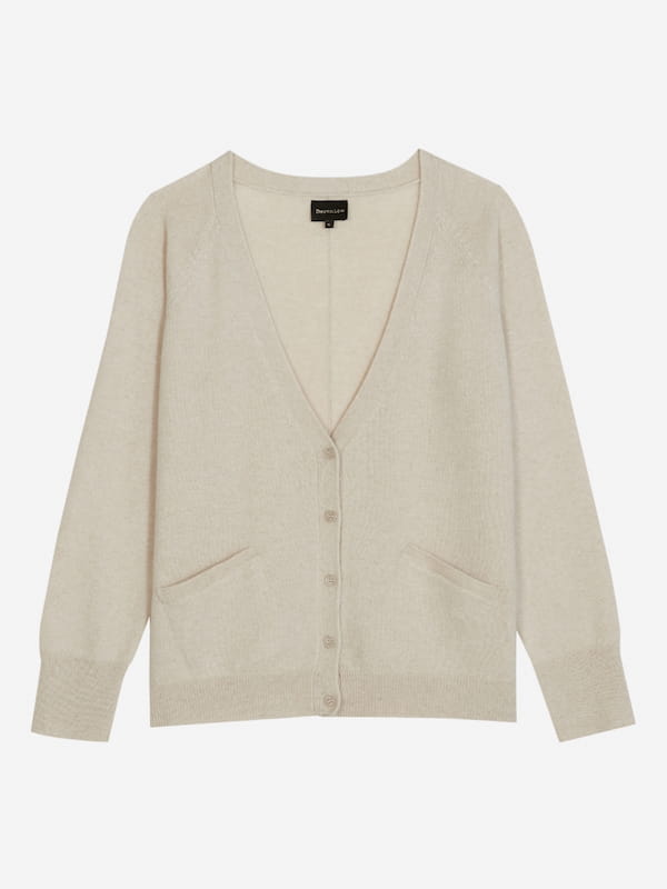 Gilet en cachemire uni, manches longues, deux poches plaquées devant, fermeture par boutons ton sur ton de Berenice