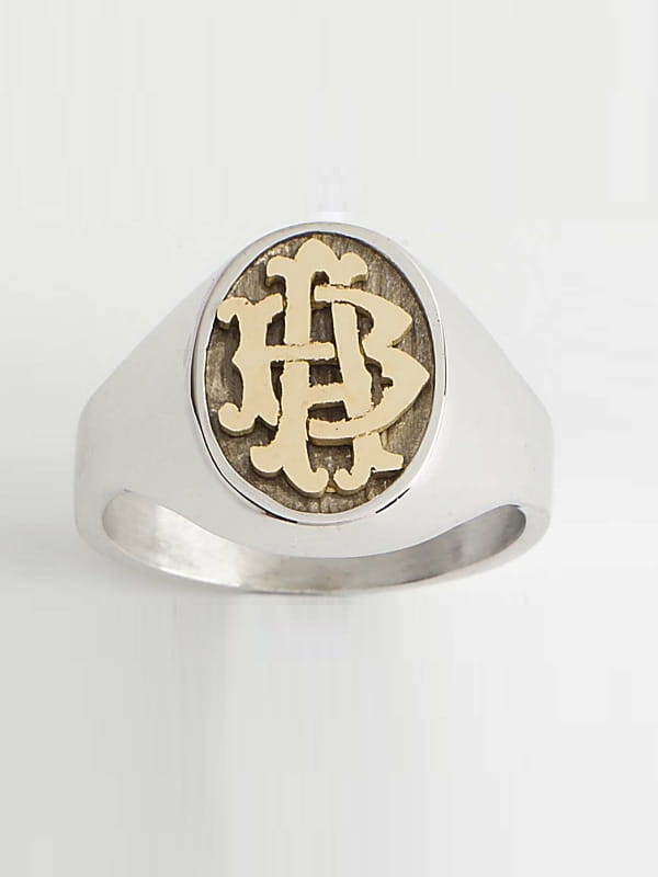 Chevalière ovale en argent avec initiales dorées de Portail du Bijou