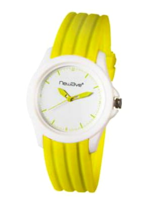 Montre ronde avec bracelet en plastique silicone jaune fluo et cadran blanc de Newave sur La Redoute