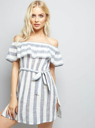 Robe à rayures grises et blanches et nouée à la taille de New Look