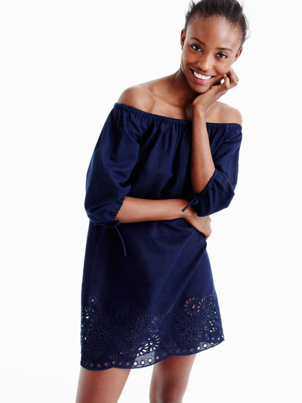 Robe bleu nuit à manches bouffantes et détails de dentelle de J. Crew