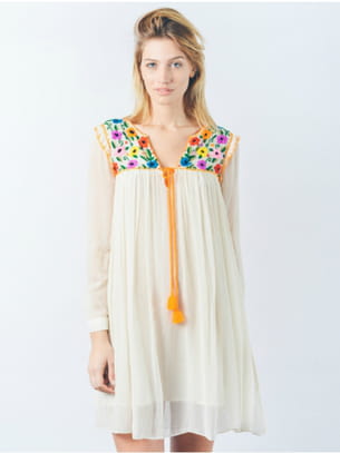 Robe blanche style caftan à broderies florales de Nina Kaufmann