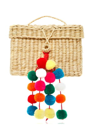 Petit sac en raphia a pompons multicolores de Nannacay sur Moda Operandi