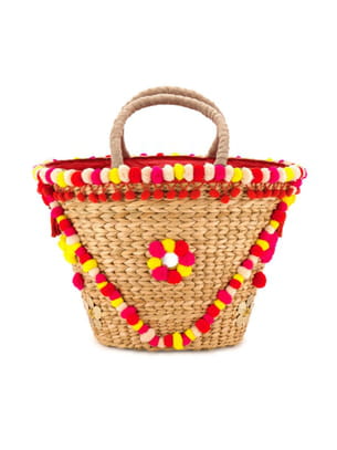 Sac grand volume en paille et pompons multicolores de Cosmoparis