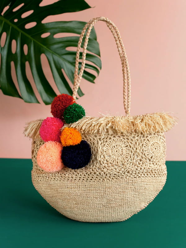 Grand Panier en raphia et lurex avec pompons colorés de Des Petits Hauts