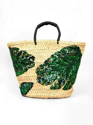 Panier à feuilles de palmier vertes en paillettes de New Look
