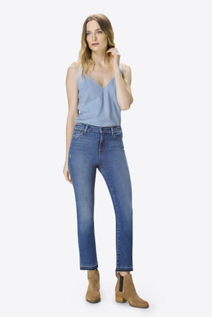 Jean skinny taille haute, longueur 7/8e, denim stretch, surpiqûres contrastées et détails d'usure de J Brand