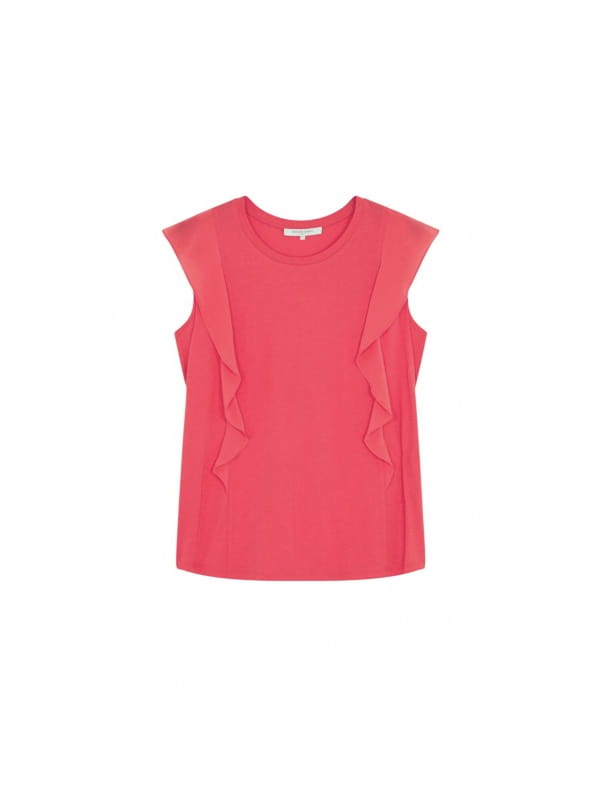T-shirt volanté bi-matière, volants en soie devant et emmanchures, col rond, pli plat au dos de Gérard Darel
