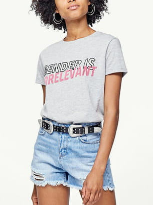T-shirt gris imprimé "Gender is irrelevant" de Stardivarius
