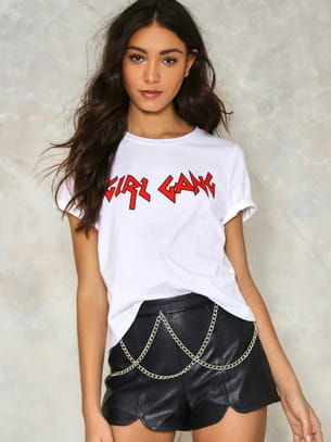 T-shirt blanc imprimé "Girl gang" de Nasty Gal
